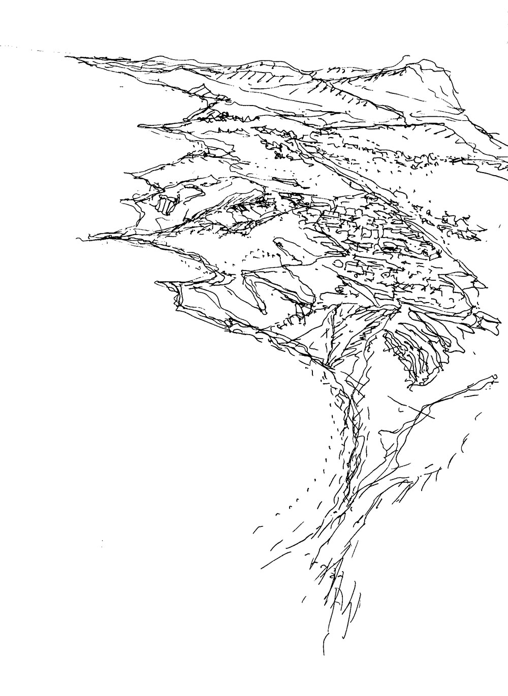Se proponen unidades de asentamiento que podían tener un perfil más o menos regular que tratan de combinar un espacio exterior con vocación de parque, con un espacio interior más urbano donde se desarrolla la vida con la actividad diaria y social del hombre; la sociabilidad propia del hombre. En cada unidad conviven dos tipos arquitectónicos que responden a dos visiones: la que se eleva sobre el horizonte y divisa lo lejano, y la que se acerca más a la tierra. La disposición de las unidades sigue una serie de leyes que le permiten crecer amoldándose a unas solicitaciones concretas y que poseen en principio una gran flexibilidad, sobre una estructura ordenadora. Esta estructura se apoya en la topografía generando sectores delimitados por unos elementos estructurales que definen un módulo ortogonal direccional que se repite, duplica en planta y sección, se amplía en los límites que marca la topografía, las tensiones provocadas por las vistas, generando una planta y sección ortogonales, pero, que al igual que la lluvia orada la roca, esas tensiones-solicitaciones horadan estas unidades, según un sistema aleatorio que genera vacíos, intersticios, en horizontal y vertical, en función a las condiciones de uso de los módulos y las circunstancias del lugar.
